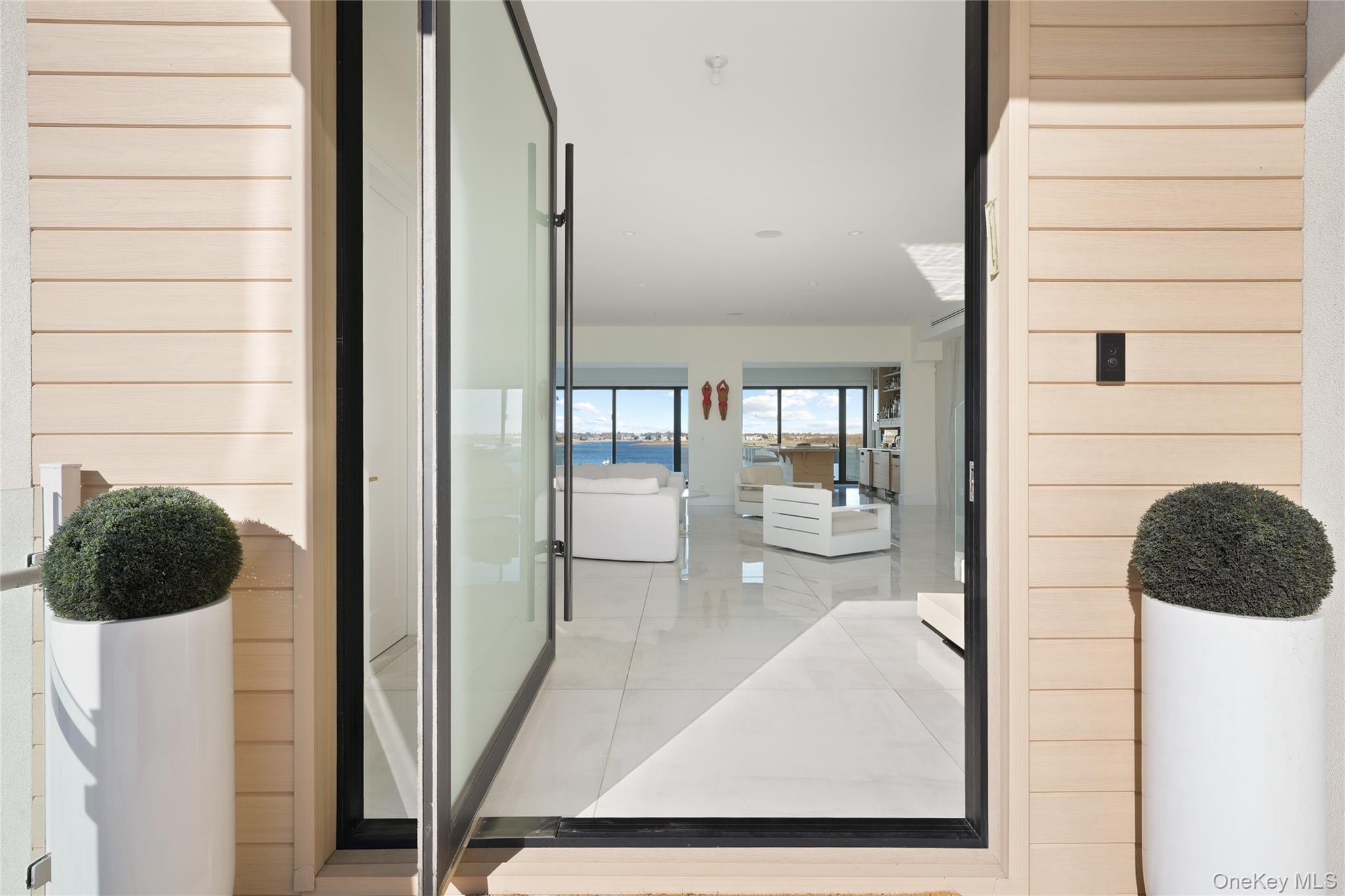 From the moment you enter, expansive water views and striking interiors set the tone for this Atlantic Beach waterfront residence. Designed with entertaining in mind, the home blends expansive indoor-outdoor living with refined, high-end finishes throughout. Situated on a 12,000 SF lot, this home built in 2021 offers direct frontage on Reynolds Channel, ocean views from the roof deck, and a location just steps from the beach. The property features over 5,000 SF of outdoor decking, including a 3,000 SF rooftop deck with firepit and kitchenette. The home includes 6 bedrooms and 6.5 bathrooms with high ceilings, radiant heat throughout approximately 8,500 SF of tile flooring, and an open layout connecting the kitchen, living, and dining areas. Floor-to-ceiling sliding glass doors frame the water and provide seamless access to multiple outdoor spaces. A custom wet bar anchors the main living area. The kitchen is equipped with Sub-Zero and Wolf appliances, custom cabinetry, natural stone surfaces, and a center island with seating. All bedrooms feature private balconies facing Reynolds Channel. The main level also includes a media room, sauna, indoor/outdoor bath, and two decks overlooking the water. Outdoor areas include a heated pool, jacuzzi, sundeck, and low-maintenance turf. A summer kitchen with grill and smoker, outdoor TV, and sound system enhances the backyard. The private dock accommodates up to three boats with direct bay access. Additional features include two washer/dryer sets, a large crawl space for storage, a two-car garage, and a driveway accommodating up to six vehicles. Convenient access to New York City makes the property suitable as both a full-time residence and a weekend retreat.